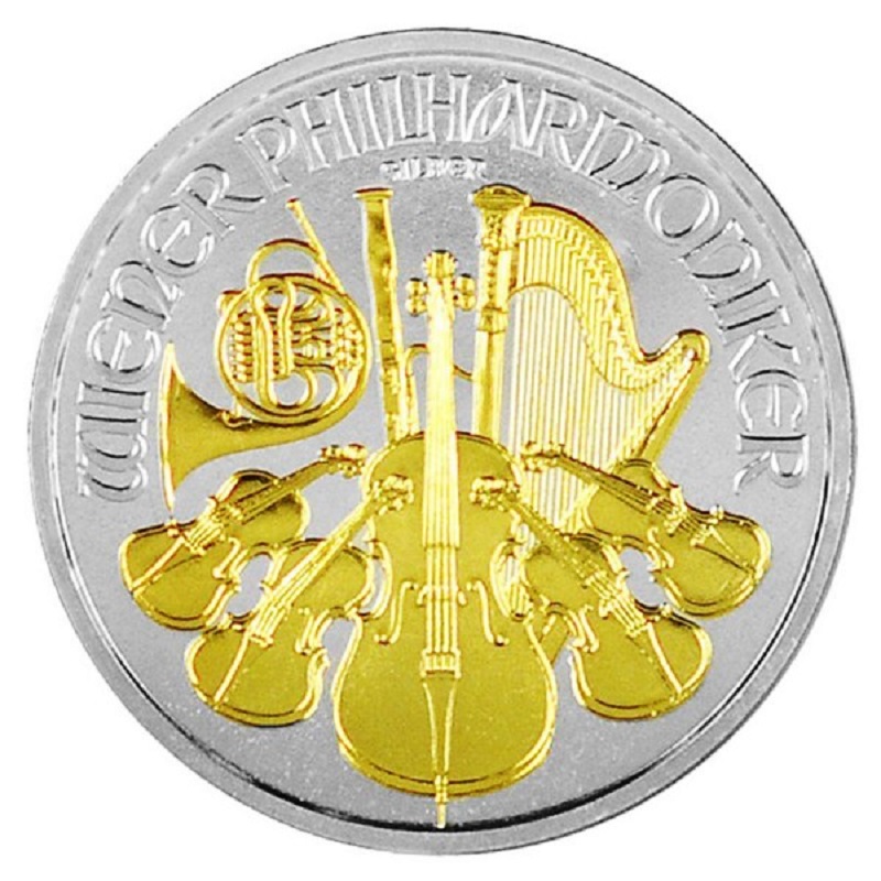 Серебряная монета Австрии - "Венский Филармоникер" с позолотой, 31,1 г чистого серебра (проба 999)