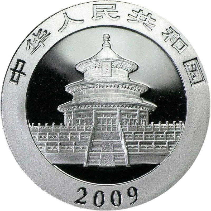 Серебряная монета Китая "Панда" 2009 г.в., 31.1 г чистого серебра (проба 999)