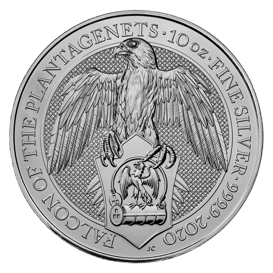 Серебряная монета Великобритании "Сокол Плантагенетов" 2020 г.в., 311 г чистого серебра (Проба 9999)