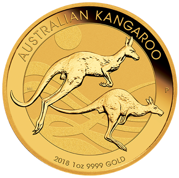 На реверсе золотой монеты представлен кенгуру — символ Австралии. Изображение меняется каждый год. Надпись AUSTRALIAN KANGAROO — австралийский кенгуру. Также указаны год выпуска монеты, вес 1 oz (1 тройская унция) и проба золота - 0.9999 (99,99% чистого золота). На монете 2018года выпуска изображен кенгуру в движении. Знак монетного двора - английскую букву "P" (Perth Mint) можно видеть слева от изображения кенгуру на реверсе монеты.