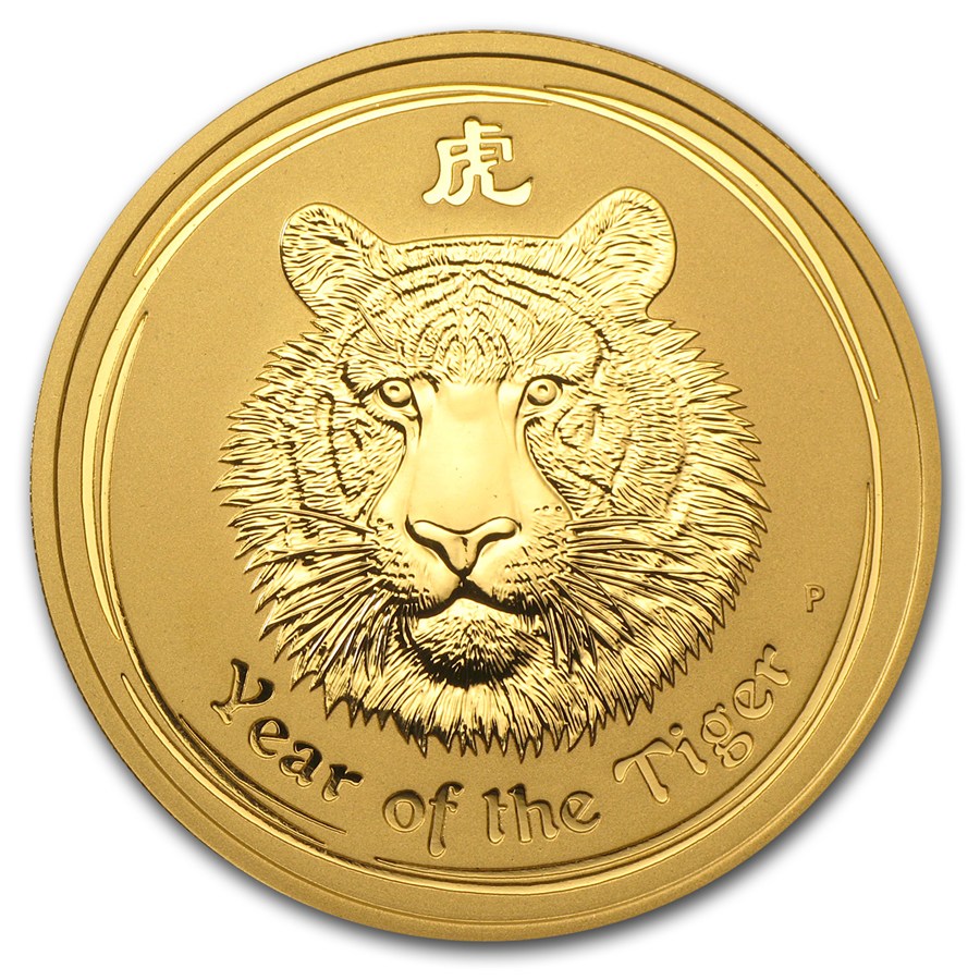 Инвестиционная золотая монета из серии "Лунный календарь" - год Тигра выпущена Пертским монетным двором в 2010 году. Эти золотые инвестиционные монеты посвящены животному-символу 2010 года – тигру. Золотая инвестиционная монета Лунар II Тигр имеет пробу 0,9999 долей чистого золота. Тираж монеты ограничен.