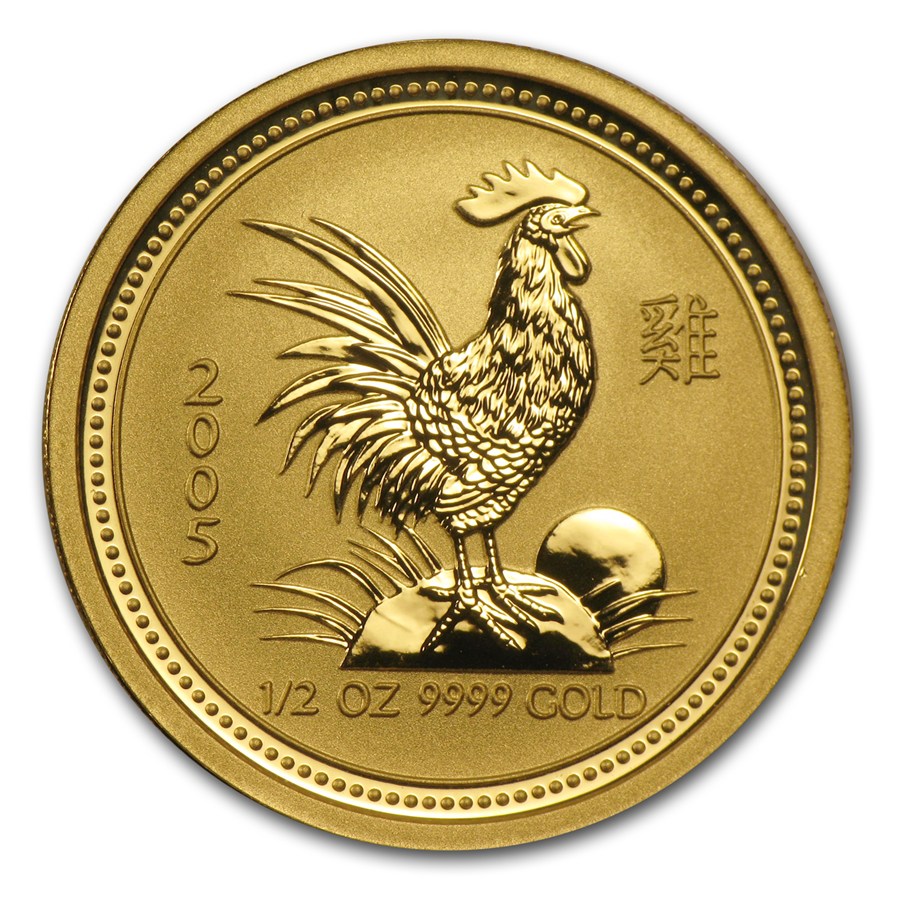 Золотая монета Австралии "Год Петуха" 2005 г.в., 15.55 г чистого золота (проба 9999)