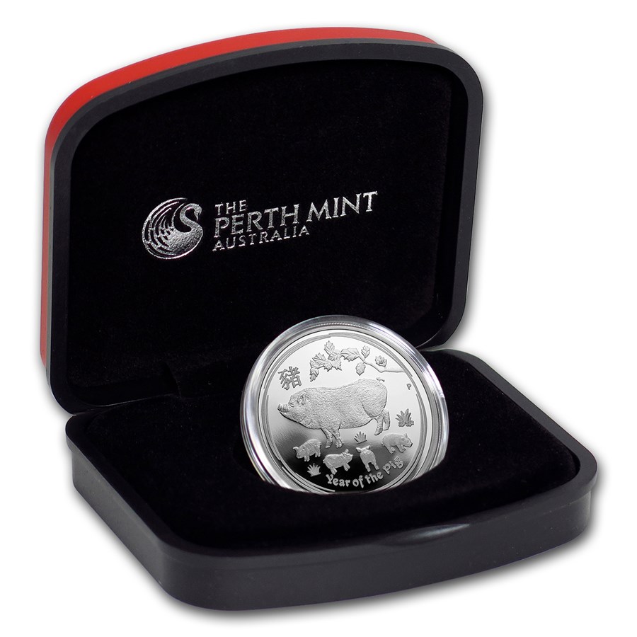 Серебряная монета Австралии "Год Свиньи" 2019 год (пруф), 15,55 г чистого серебра (Проба 9999)