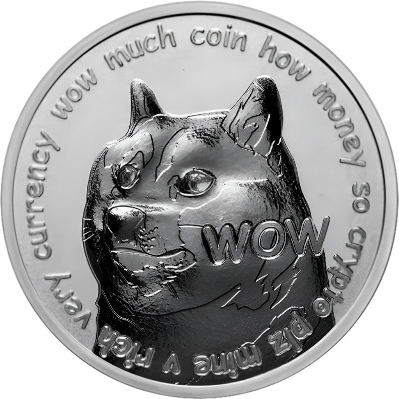Этот чудесный 1 унцовый серебряный жетон посвящен популярной криптовалюте-мему Doge.