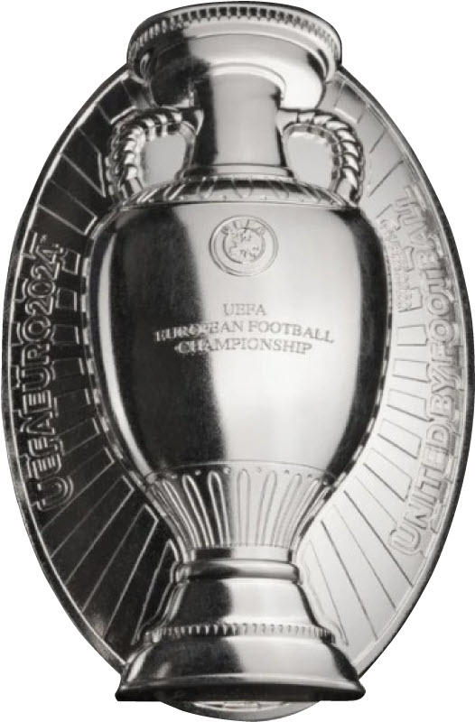 Эта замечательная серебряная монета весом 3 унции посвящена официальному трофею ЕВРО 2024: трофею, который вручается победителю Лиги чемпионов УЕФА, самого престижного клубного футбольного турнира в Европе! Монета отчеканена с впечатляющим сверхвысоким рельефом. Она поставляется в тематической упаковке с сертификатом подлинности. Ограниченный тираж - всего 2.024 экземпляра по всему миру.