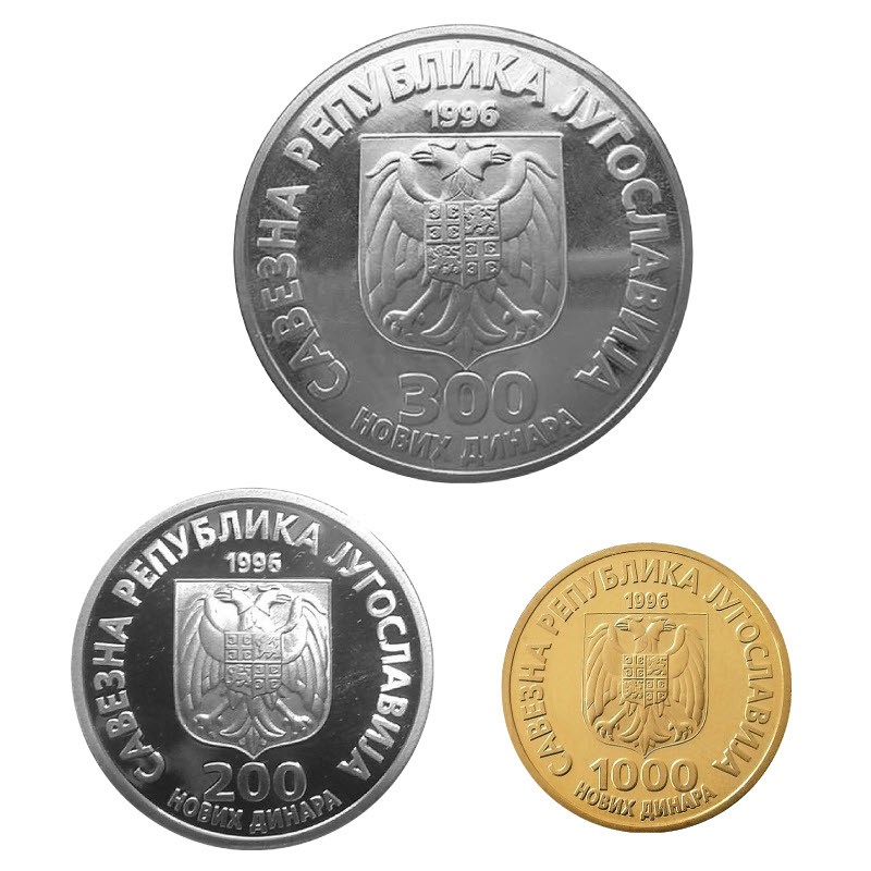 1000 динар 8,64 г золота 900 пробы, Ø = 24 мм, тираж = 5000 штук;