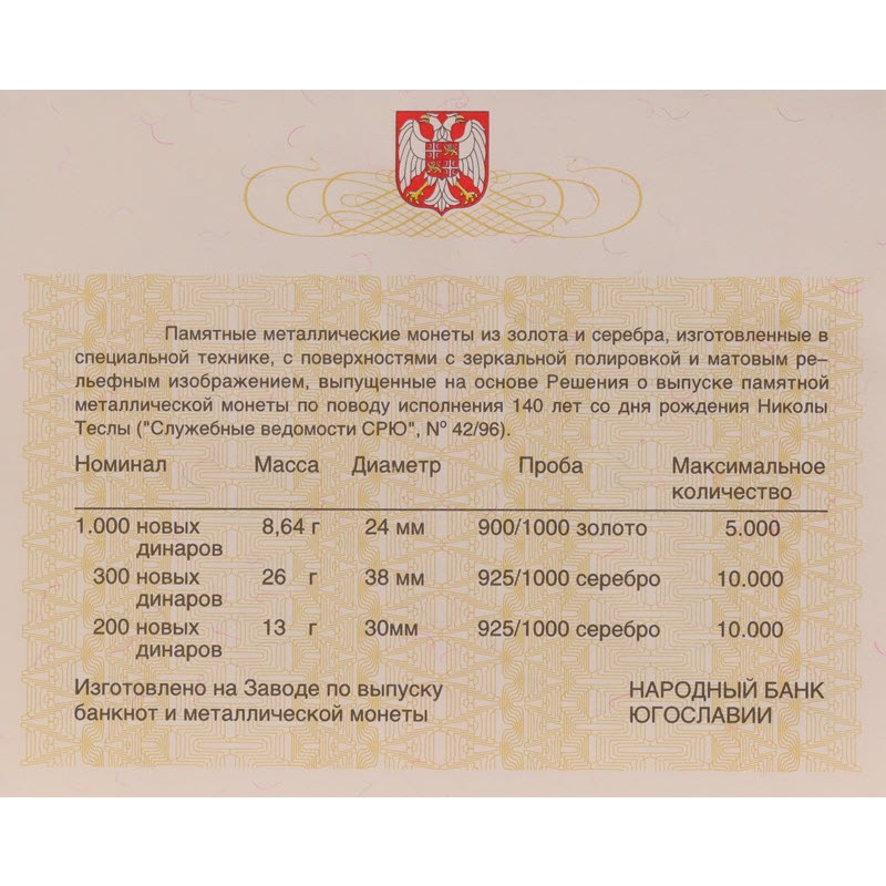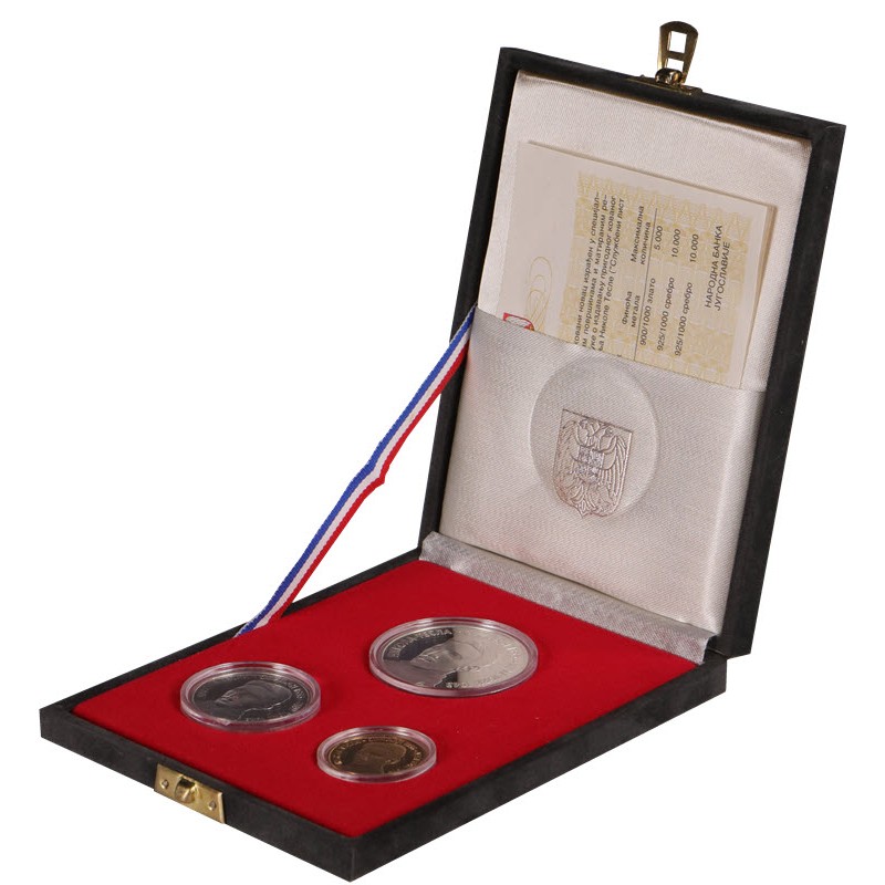 Набор из 3-х монет Югославии «Никола Тесла» качества пруф 1996 года.