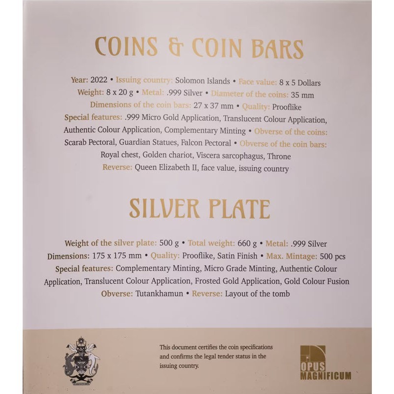 Набор из 8-ми серебряных монет Соломоновых островов "Гробница Тутанхамона" 2022 г.в., 8*20 г и 500 г чистого серебра (Проба 999)