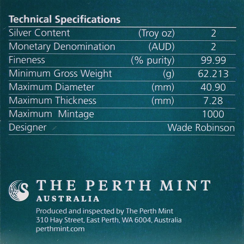 На реверсе изображены дракон и кои, смотрящие на пылающую жемчужину, древнее воплощение мудрости. Фоном служит «лунный мост» и его отражение в воде - символ чистоты и совершенства. Вверху справа P (монограмма Пертского монетного двора), справа у канта инициалы дизайнера WR (Wade Robinson).