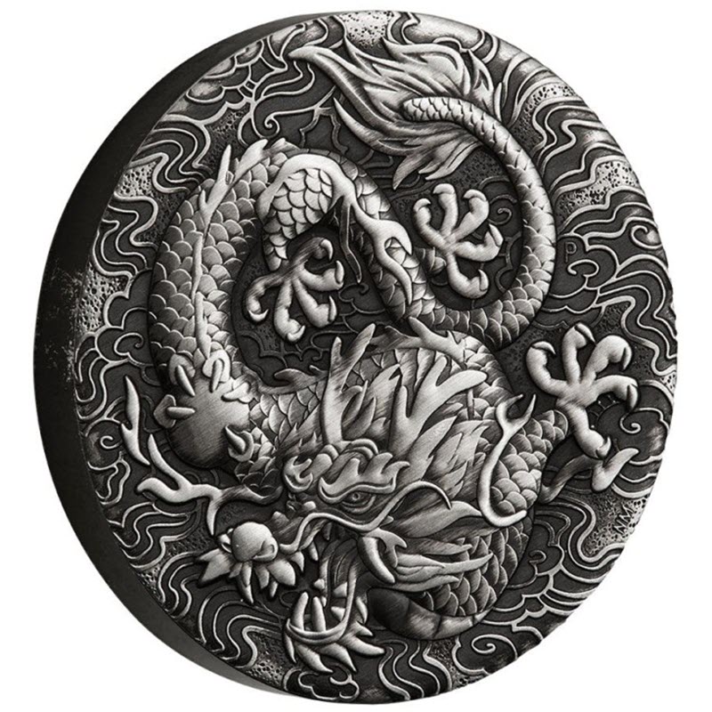 Серебряная монета Австралии "Мифический дракон" 2022 г.в., 62.2 г чистого серебра (Проба 999)