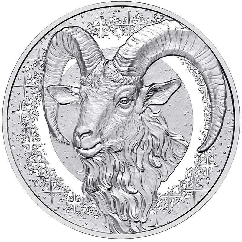 Первая монета из серии «В звездах» посвящена людям, родившимся под знаком Козерога. У нее качество пруф и вставка из розового кварца. Поставляется в оригинальном футляре с сертификатом подлинности. Тираж: 30000 штук.