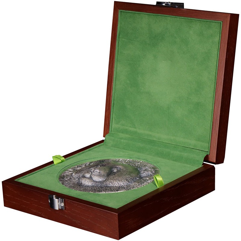 Эта чудесная серебряная монета Бенина весом 2 кг посвящена панде, национальному достоянию Китая. У нее ультравысокий рельеф с античной отделкой работы Бени Дебакера (Beni Debacker) монетного двора П. де Грефа. Поставляется в футляре с сертификатом подлинности. Тираж: 75 штук.