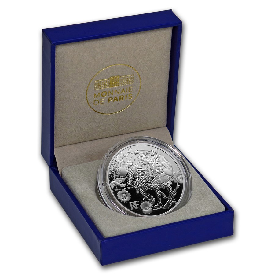 Эта красивая серебряная серебряная монета посвящена подписанию перемирия и прекращению Первой Мировой войны в 1918 году.