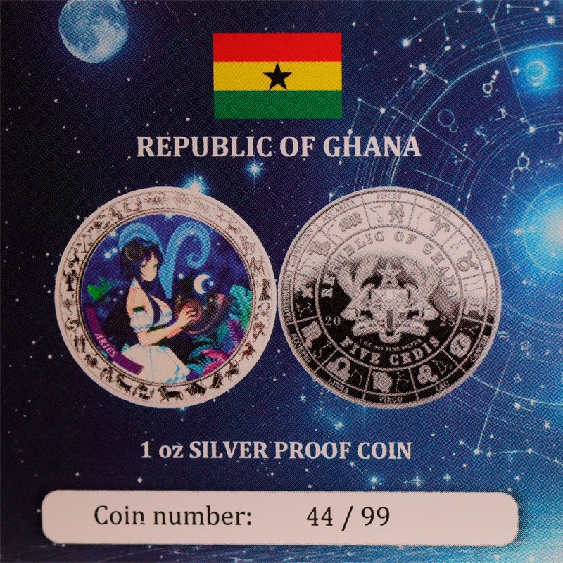 Серебряная монета Ганы "Аниме Зодиак. Овен" 2025 г.в. (пруф), 31.1 г чистого серебра (проба 999)