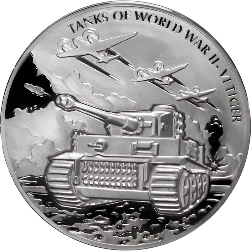 Эта чудесная серебряная монета из серии «Танки Второй мировой войны» посвящена немецкому тяжелому танку Panzerkampfwagen VI Tiger (Тигр).