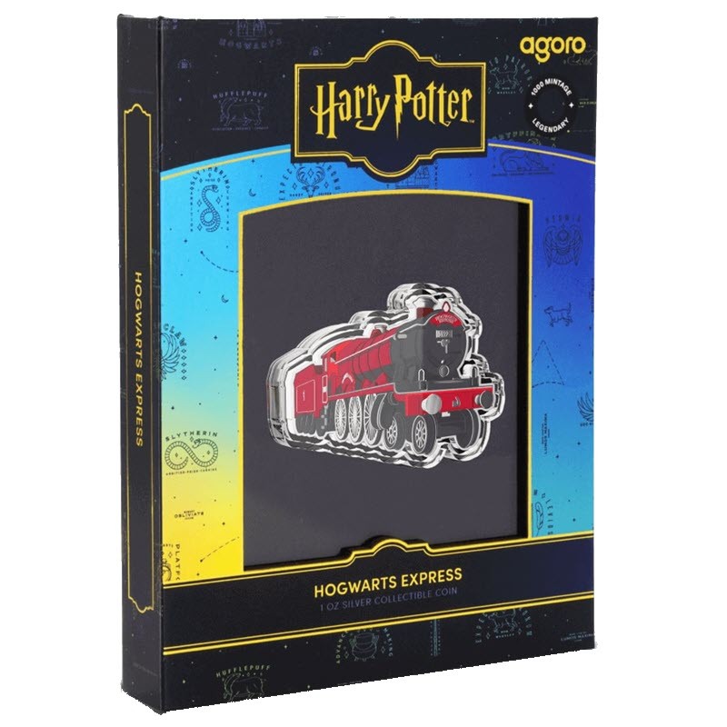 Эта чудесная серебряная монета Ниуэ весом 1 унция от Новозеландского монетного двора посвящена паровозу «Хогвартс-экспресс». У нее размеры 60 Х 42 мм, качество пруф, селективная окраска и высокий рельеф. Поставляется в оригинальном футляре с сертификатом подлинности. Тираж: 1000 штук.