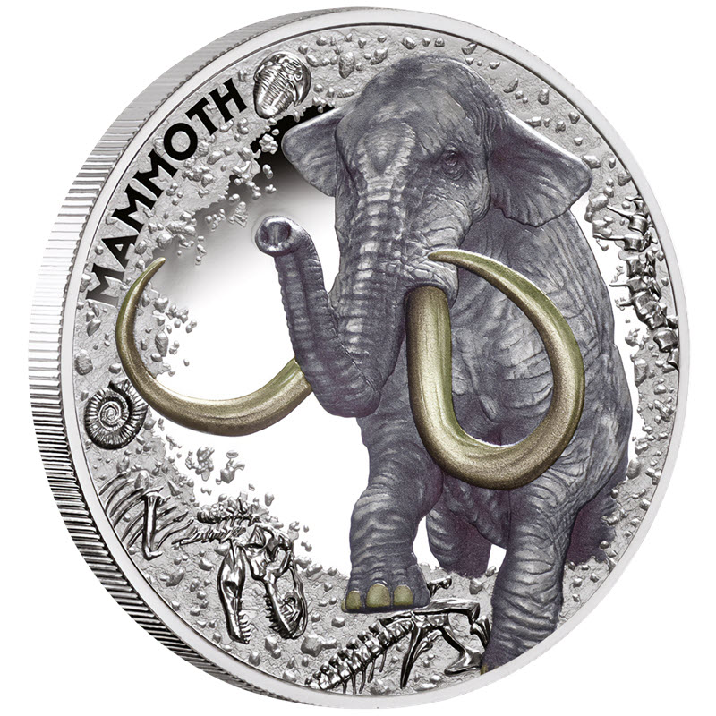 Эта чудесная серебряная монета весом 1 унция посвящена мамонту. У нее качество пруф и селективная окраска. Поставляется в оригинальном футляре с пронумерованным сертификатом подлинности. Тираж: 750 штук.