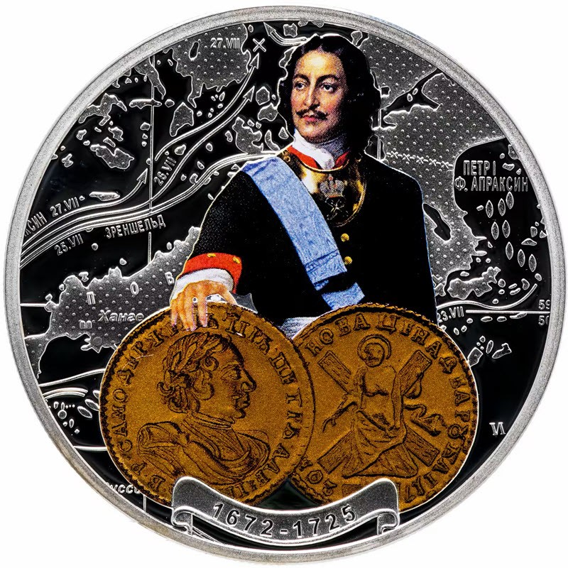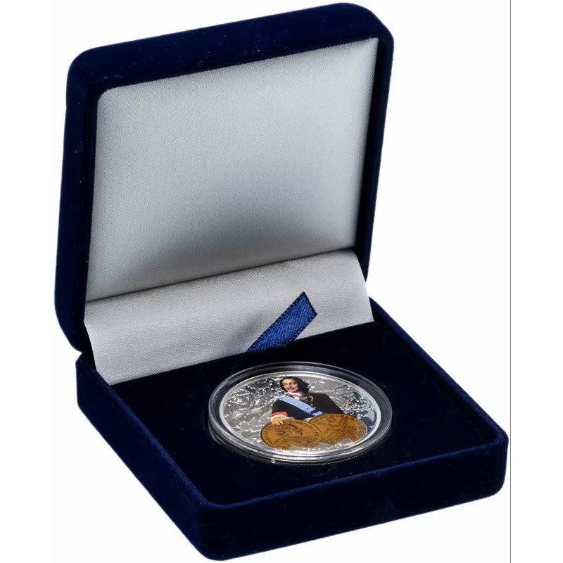 Эта памятная серебряная монета Ниуэ посвящена Петру I. У нее качество пруф и селективная окраска. Поставляется в оригинальном футляре с сертификатом подлинности. Тираж: 4000 штук.