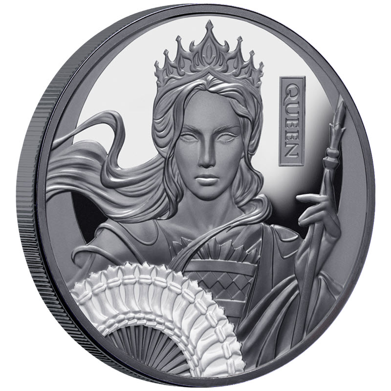 Серебряная монета весом 1 унция посвящена Шахматной Королеве. У нее качество черный пруф. Поставляется в оригинальном футляре с сертификатом подлинности. Тираж: 999 штук.