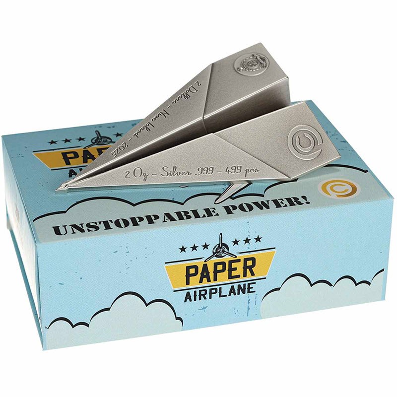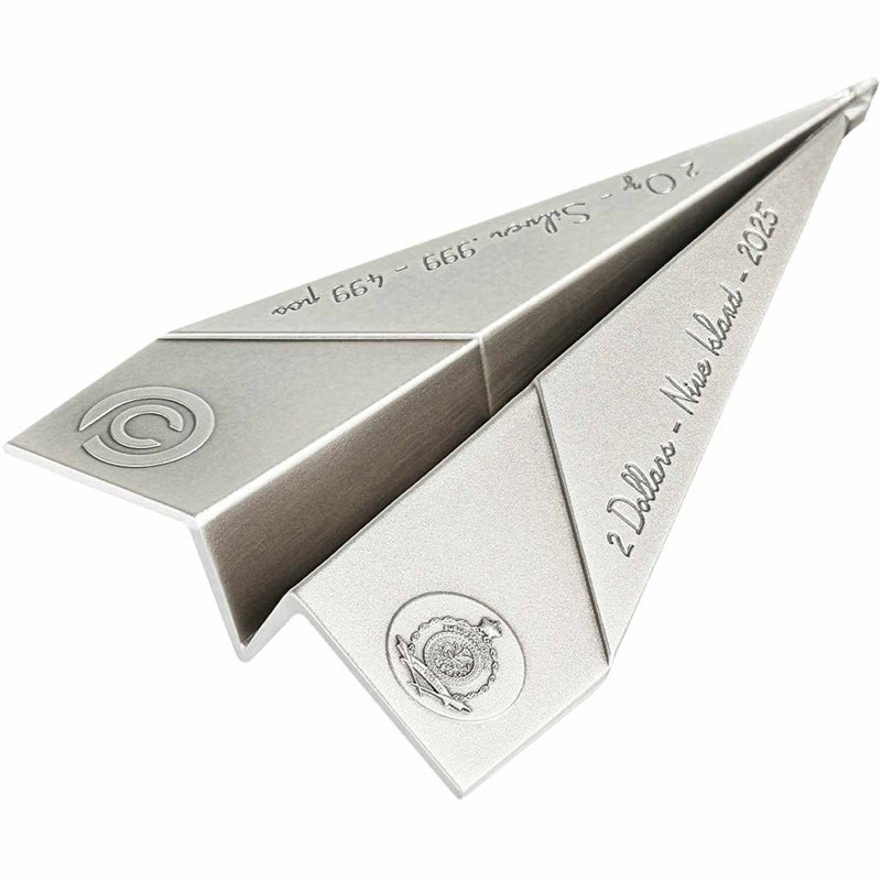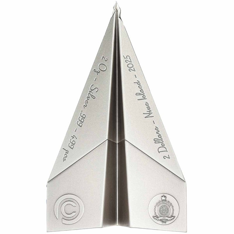Серебряная монета Ниуэ "Сложенные мечты. Бумажный самолётик" 2025 г.в., 62.2 г чистого серебра (проба 999)