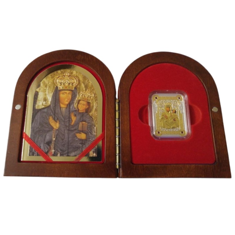 Эта чудесная 1 унцовая серебряная монета посвящена Иконе Зарваницкой Божией Матери — чудотворному образ Богородицы с Младенцем. Этот образ, явился в 1240 году монаху, который "зарвал" (схватил) край Ее ризы. Икона стала центром паломничества в Зарваницу (Тернопольская область), где находится в Троицком храме, славится исцелениями и помощью в жизненных нуждах.