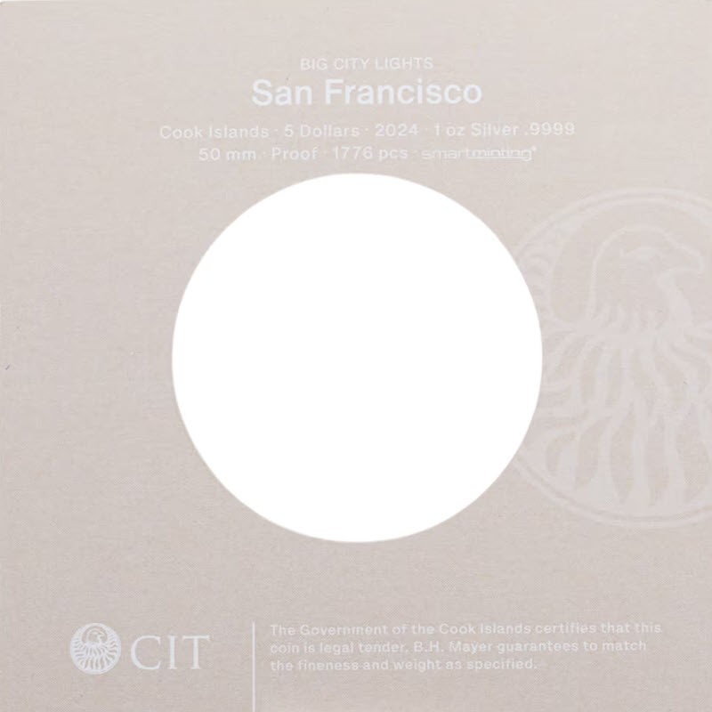Серебряная монета Островов Кука "Огни большого города. Сан-Франциско" 2024 г.в. (пруф), 31.1 г чистого серебра (проба 9999)
