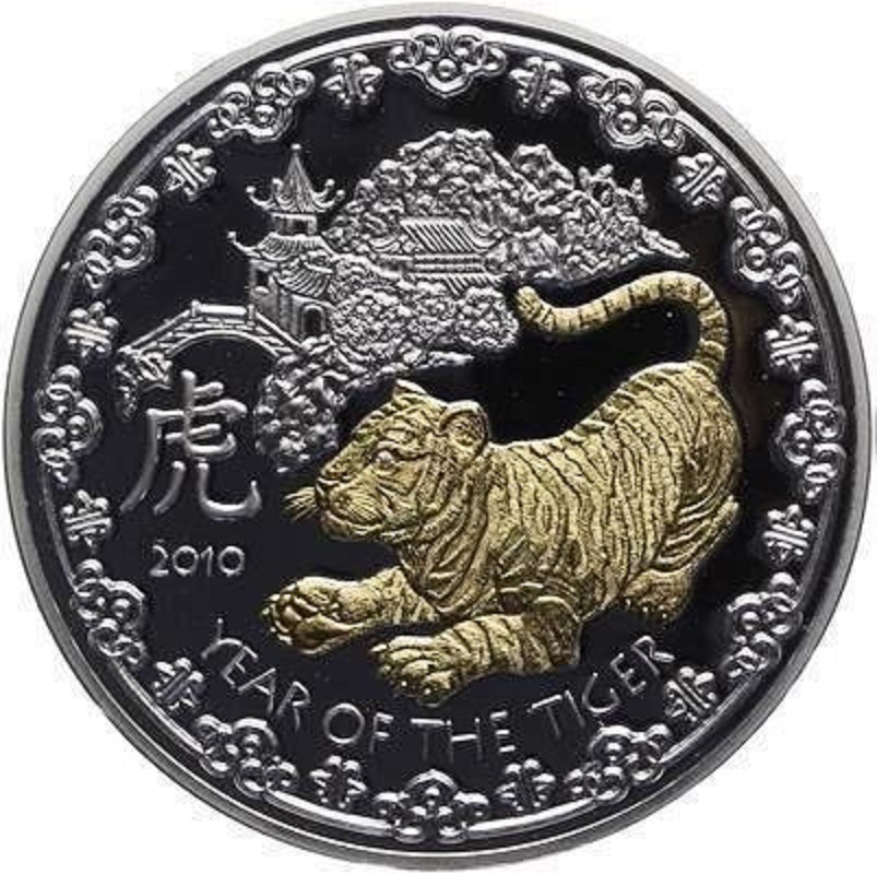 Серебряная монета Руанды "Год Тигра" 2010 г.в., 93.3 г чистого серебра (Проба 999)