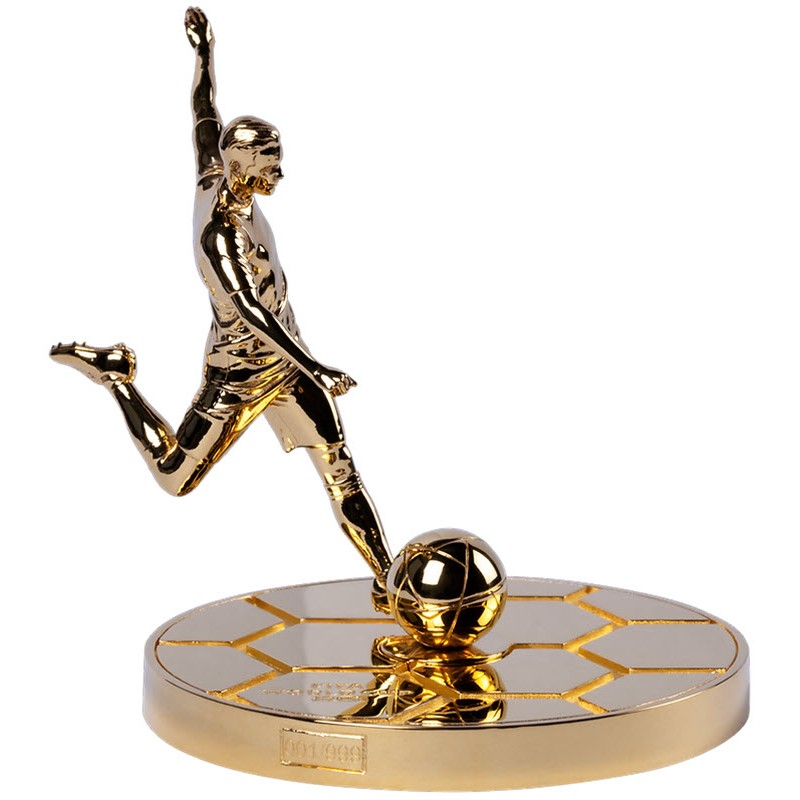 Эта потрясающая серебряная монета посвящена Чемпионату мира по футболу 2026 года. У неё качество пруф-лайк, 3D-форма размером 64,2 Х 74,9 мм и золочение в 24 карата. Монета оснащена инновационным вращающимся механизмом, который позволяет объемной фигуре футболиста вращаться на 360° вокруг своей оси. Поставляется в оригинальном футляре с сертификатом подлинности. Тираж: 999 штук.