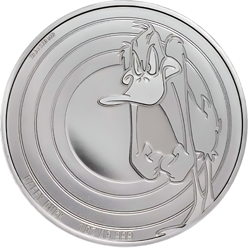 Эта чудесная серебряная монета с изображением Даффи Дака - мультипликационного персонажа концерна Уорнер Бразерс (Warner Bros. Entertainment, Inc.) из серии монет «Весёлые мелодии» (Looney Tunes).
