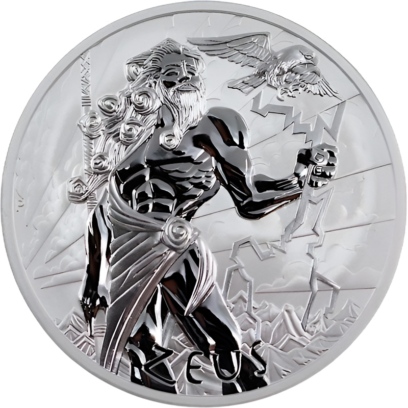 Эта чудесная серебряная 1 унцовая монета Пертского монетного двора Австралии посвящена древнегреческому богу Зевсу, владыке неба, грома и молний, который правит всем миром с вершины горы Олимп. Главными атрибутами Зевса являются карающая молния, скипетр и священный орел, символизирующий его безграничную власть и зоркость.