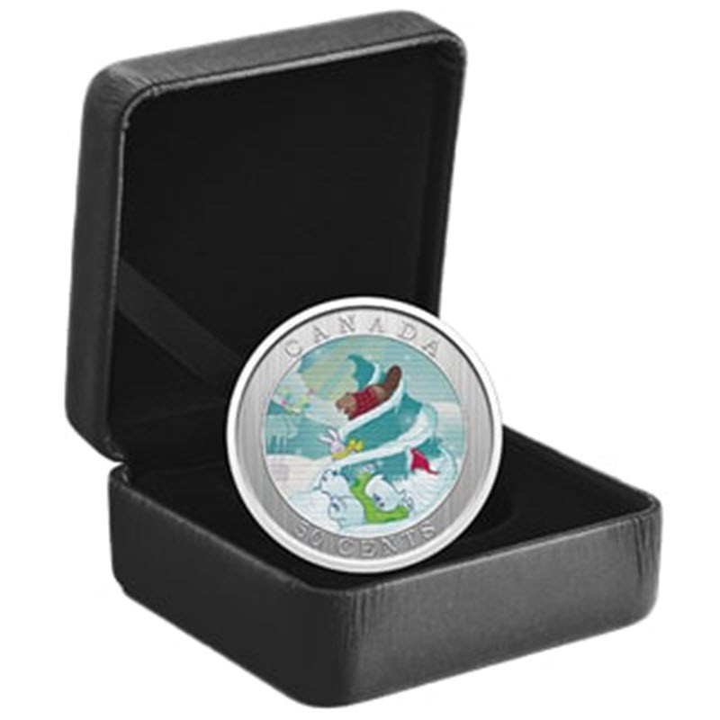 Эта чудесная монета из никелированной стали от Канадского монетного двора представляет канадскую зиму. У нее качество BU, селективная окраска и лентикулярная технология, при наклоне монеты создается иллюзия движения, и кажется, что персонажи скользят по снегу. Поставляется в оригинальном футляре с сертификатом подлинности. Тираж: 30000 штук.