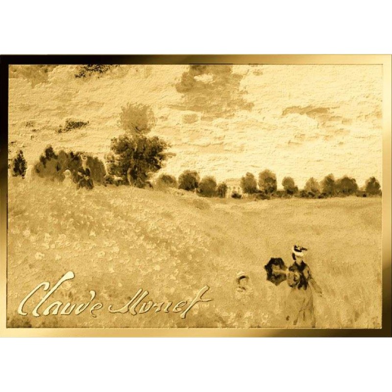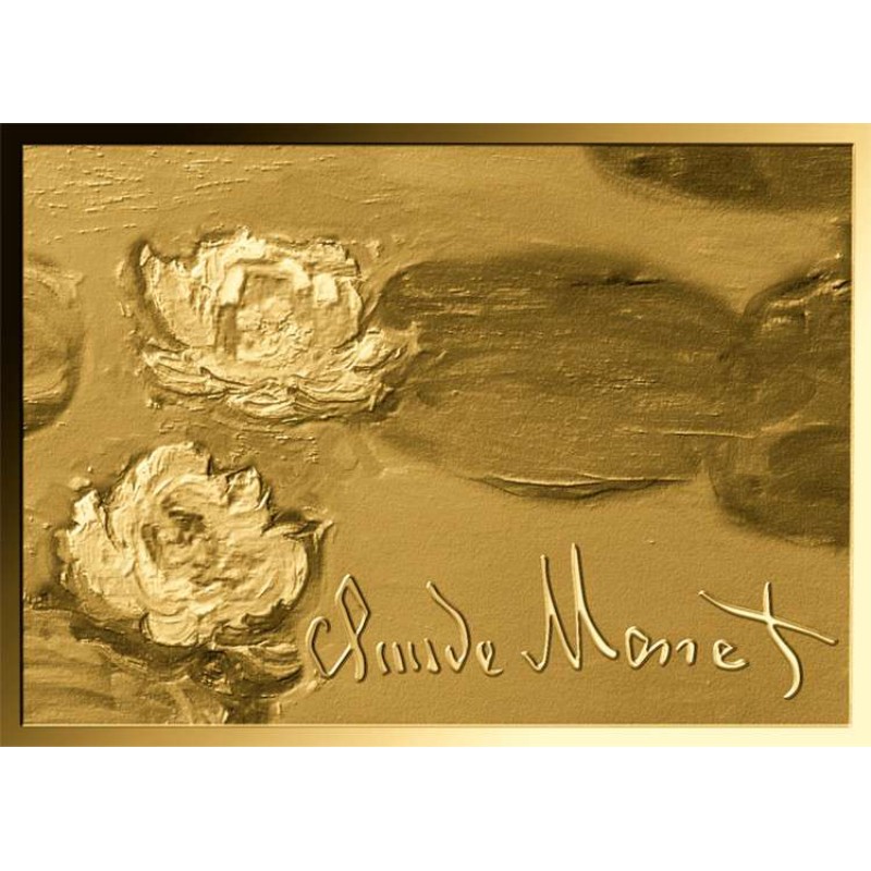 Эта потрясающая золотая монета весом 1/1000 унции посвящена картинам Клода Моне. У нее размеры 11 Х 15.4 мм и качество пруф-лайк. Поставляется в карточке с сертификатом подлинности. Тираж: 50 000 штук.
