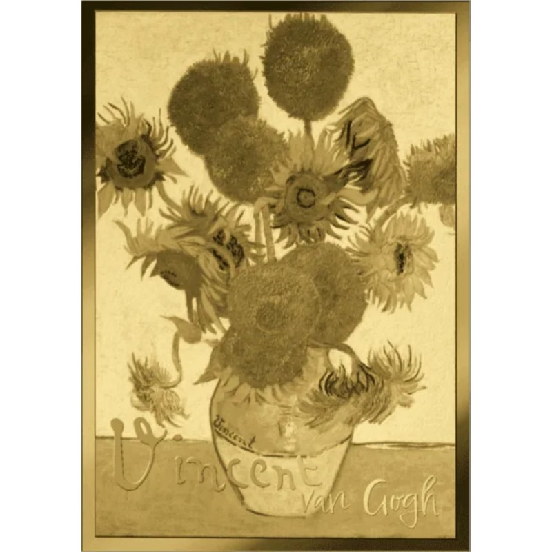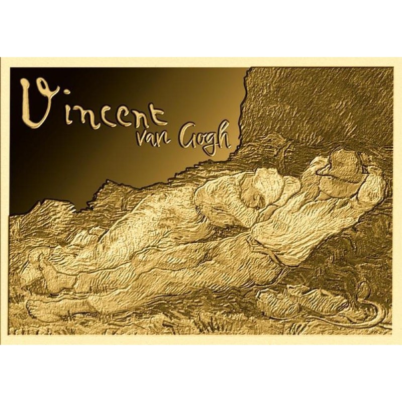 Эта потрясающая золотая монета весом 1/1000 унции посвящена картинам Винсента Ван Гога. У нее размеры 11 Х 15.4 мм и качество пруф-лайк. Поставляется в карточке с сертификатом подлинности. Тираж: 50 000 штук.