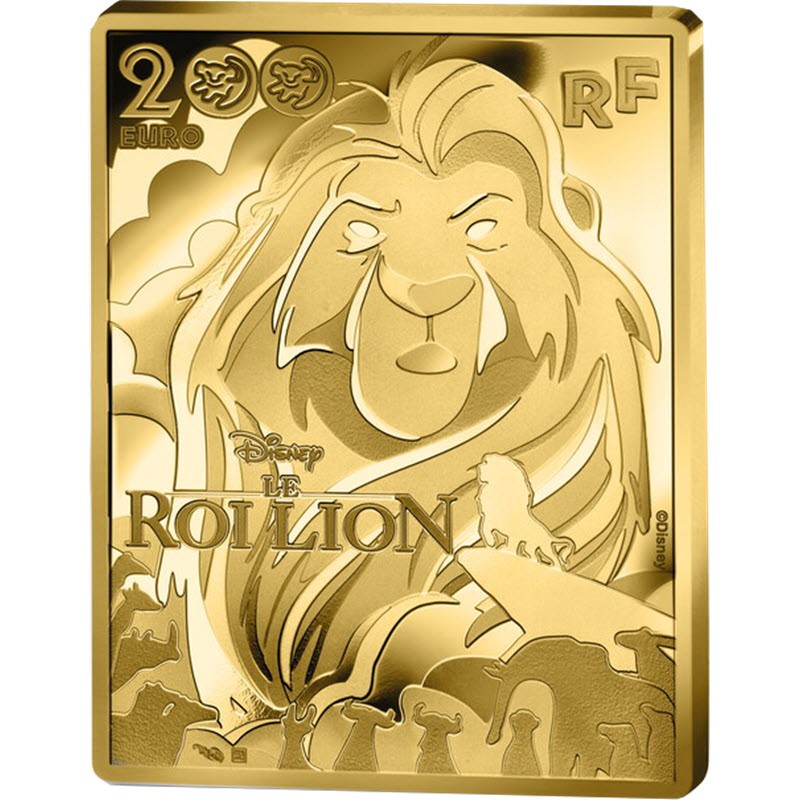 Эта очаровательная золотая монета посвящена Королю Льву в честь 30-летия мультфильма. Дизайнер Хоакин Хименес (Joaquin Jimenez). У нее размер 38 Х 29.1 мм и качество пруф. Поставляется в футляре с сертификатом подлинности. Тираж: 250 штук.