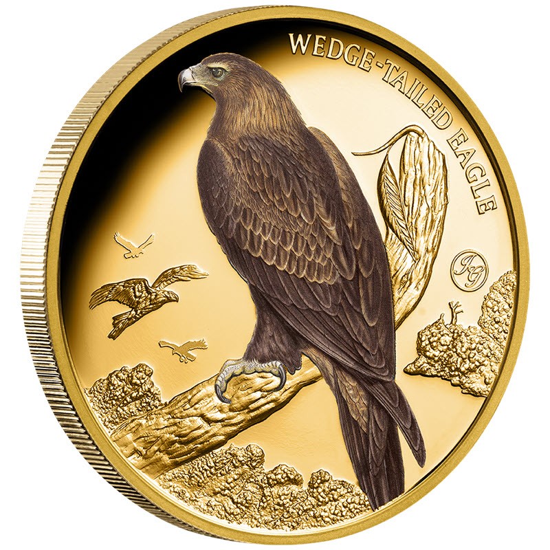 Эта чудесная золотая монета весом в 1 унцию из серии «Птицы Австралии» посвящена клинохвостому орлу на основе рисунков британского орнитолога и художника-анималиста Джона Гульда. У нее качество пруф и селективная окраска. Поставляется в оригинальном футляре с сертификатом подлинности. Тираж: 50 штук.