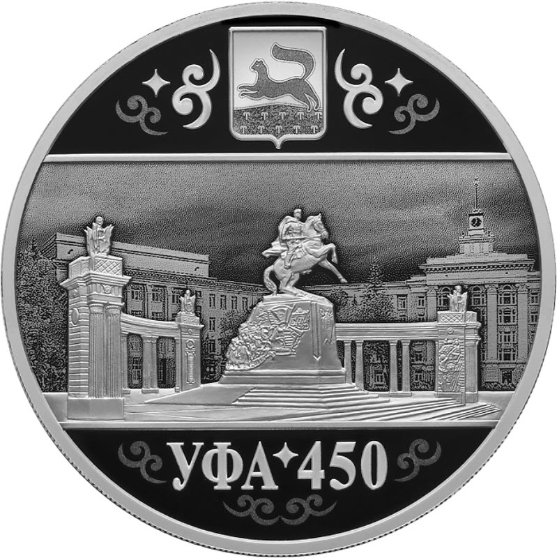 Российская памятная серебряная монета 2024 г. Банка России посвящена 450-летию основания г. Уфы. Тираж: 3000 штук.